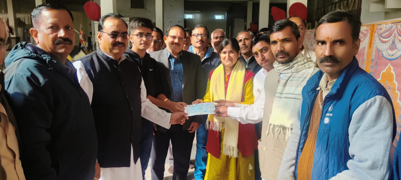 आज दिनांक 31-12-2023 रविवार को आर. एस. डबल्यू. एम के श्रमिक संघ (इंटक) व प्रबन्धक वर्ग ने संयुक्त रूप से ससम्मान बाड़ी माता मन्दिर निर्माण हेतु 2,00,021 रूपये अक्षरे दौ लाख इक्कीस रूपये का चैक बाड़ी माता जी के चरणों में समर्पित किया।