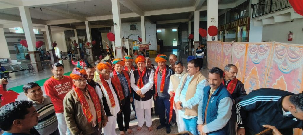 बाड़ी माता भक्त मंडली द्वारा साफा पहनाकर उपरना ओढ़ाकर सम्मानित किया सेविका कृष्णा टाक ने सभी का आभार व्यक्त कर सभी के उज्ज्वल भविष्य की बाड़ी माता से प्रार्थना की ।