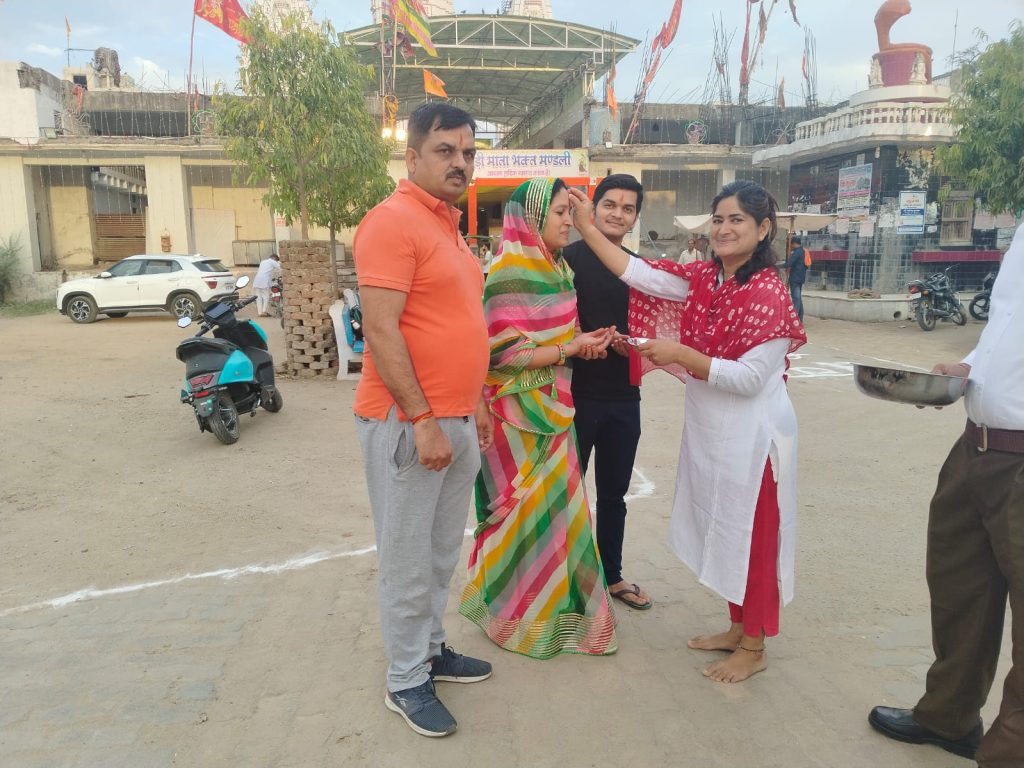 बाड़ी माता मंदिर पर पधारने वाले श्रद्धालु भक्तों का तिलक लगाकर नव वर्ष की शुभकामनाएं दी गई-1