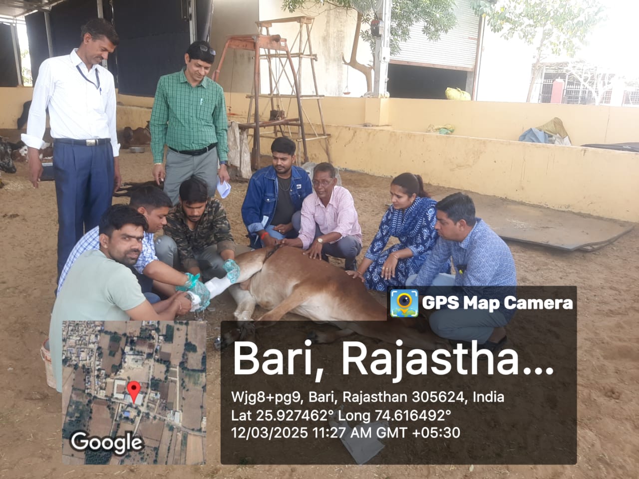 राजकीय प्रथम श्रेणी पशु चिकित्सालय विजयनगर द्वारा राजस्थान सरकार निदेशालय पशुपालन विभाग जयपुर के आदेशानुसार बाड़ी माता गौशाला में तीन दिवसीय पशु बांझपन निवारण शिविर का आयोजन डॉ. भूपेंद्र सिंह चौधरी पशु चिकित्सा विशेषज्ञ द्वारा किया गया। इस तीन दिवसीय शिविर में 40 बांझपन मादा गोवंश चिन्हित किए गए एवं उनका पशुपालन विभाग द्वारा उपचार किया गया।