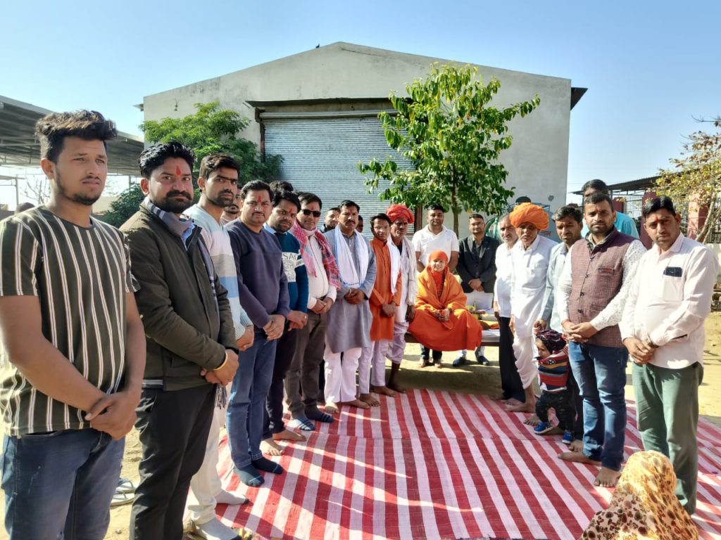 स्व. चांदी देवी धर्मपत्नी मिश्रीलाल जी जांगिड़ के सत्रहवी पुण्यतिथि पर बाड़ी माता गौशाला में गौ पूजन एवं ग्वाला पूजन साध्वी आराधना गोपाल सरस्वती दीदी के सानिध्य राजेंद्र, भागचंद, सांवर, सुभाष, कन्हैया, नित्यांश, सीता ,चंता, पूजा परिवारजन द्वारा में किया गया कार्यक्रम में लाभचंद प्रजापति ,नौरतमल जाट, कैलाश गुर्जर, प्रभु लाल गुर्जर, धर्मीचंद व्यास माधव गौ विज्ञान केंद्र से कमल , मुकेश सत्यनारायण, मनीष शर्मा, महावीर जलवानिया बाबूलाल जोशी गो सेवको ने भी पूजन किया l मिश्रीलाल जी के सुपोत्र सांवरलाल जांगिड़ को धन्यवाद दिया l