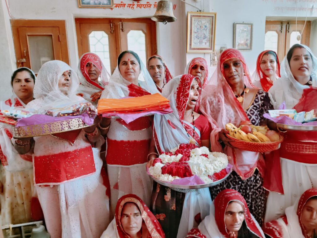 तत्पश्चात युवराज जी वैष्णव चित्तौड़गढ़ ने अपने भजनों से “सांवरिया सेठ दे दे थारो भरियो री भंडार…… बाड़ी माता के दरबार में आवे भक्त….खाटू वाले श्याम तेरी शरण में आ गया… तेरा किसने किया है श्रृंगार सांवरे …सुंदर भजनों की प्रस्तुति से भक्तों को आनंदित किया कार्यक्रम में गुरु मां सावित्री, देवी स्टेशन बालाजी मंदिर पुजारी श्री घीसाराम जी नगर पालिका अध्यक्ष अनीता मेवाड़ा, बालाजी महिला मंडल अध्यक्ष मंजू सोनी, स्वर्णकार महिला मंडल अध्यक्ष नीलम सोनी ,अग्रवाल महिला मंडल अध्यक्ष संगीता गर्ग,कांता बहन ,नाथी बहिन,मंजू, सरजू गुर्जर ,कंचन कंवर, असंख्य भक्त महिलाओं ने कार्यक्रम में नृत्य के साथ आनंद लिया रविना जोशी पलक सेन ने राधा कृष्ण की झांकी के साथ नृत्य किया कार्यक्रम समापन पर सभी भक्त महिलाओं महाप्रसाद के साथ-साथ को राम नाम लेखन पुस्तिका वितरित की गई।
